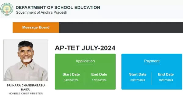 आंध्र प्रदेश शिक्षक पात्रता परीक्षा (APTET) के जुलाई सत्र (Andhra Pradesh APTET July 2024) के लिए अधिसूचना आंध्र प्रदेश स्कूल शिक्षा विभाग (APDSC) ने मंगलवार 2 जुलाई को जारी की। निर्धारित कार्यक्रम के अनुसार परीक्षा शुल्क का भुगतान आज यानी बुधवार 3 जुलाई से किया जा सकता है जबकि परीक्षा के लिए पंजीकरण बृहस्पतिवार 4 जुलाई से किए जा सकते हैं