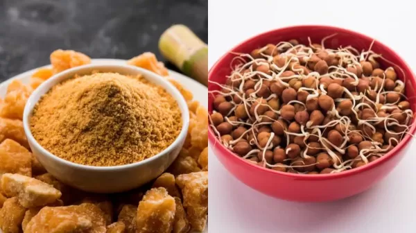 क्या आप जानते हैं कि अंकुरित चने और गुड़ दोनों ही आपकी सेहत के लिए कितने फायदेमंद साबित हो सकते हैं। इन दोनों ही चीजों में भरपूर मात्रा में पोषक तत्व पाए जाते हैं जिसके कारण इन्हें खाने से आपकी सेहत को काफी फायदा मिलता है। आइए जानें अंकुरित चने और गुड़ को साथ में खाने से आपकी सेहत को क्या फायदे मिल सकते हैं।