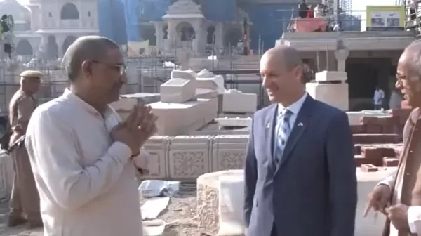 इजरायल के राजदूत रूवेन अजार ने बुधवार को अपनी पत्नी के साथ अयोध्या के भव्य राम मंदिर का दौरा किया। राजदूत ने दौरे के बाद कहा कि वे तीर्थयात्रियों और भक्तों की भक्ति से अभिभूत हैं। इजरायली राजदूत अजार ने लोगों से जुड़ने और भारत की संस्कृति को गहराई से जानने के महत्व पर जोर दिया।