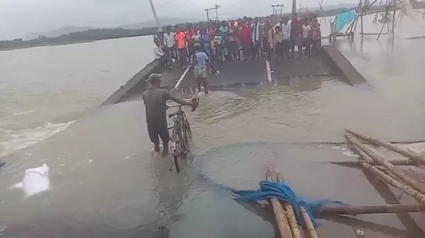 Flood in Bhagalpur बिहार के भागलपुर जिले में बाखरपुर से बाबूपुर के बीच एक पुल पूरी तरह से ध्वस्त हो गया जिससे दियारा से बाबूपुर-बाखरपुर का सड़क संपर्क टूट गया। यह सड़क पीरपैंती बाजार से बाखरपुर बाबूपुर होते हुए झारखंड को जोड़ती है। स्थानीय लोगों ने प्रशासन से पुल की तत्काल मरम्मत की मांग की है ताकि दैनिक गतिविधियों में आसानी हो।