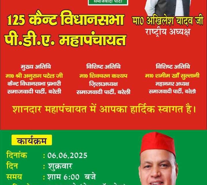 बरेली में सबसे पहले विशाल पीडीए सम्मेलन कराने वाले सपा नेता अनीस बेग कल करने जा रहे हैं पीडीए की महापंचायत, कैंट विधानसभा प्रभारी अनुराग पटेल, जिला और महानगर अध्यक्ष भरेंगे कार्यकर्ताओं में जोश, जानिये क्या होगा खास?