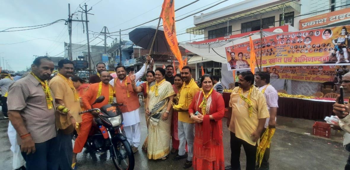 बरेली- आज श्रावण मास के अंतिम सोमवार को बदायूं रोड स्थित शिव स्वरूप बैंकट हॉल के पास पूर्व सांसद प्रवीण सिंह ऐरन एवं पूर्व मेयर श्रीमती सुप्रिया ऐरन ने कावडियों एवं शिव भक्तों का स्वागत कर फल वितरण एवं सूक्ष्म जलपान कराया। जानकारी के अनुसार हर वर्ष की भांति इस वर्ष भी श्रवण मास, सावन के महीने में शिव भक्तों में कांवड़ लाने का उत्साह खूब रहा है। शिव भक्त बारिश में भीगते हुए हर हर महादेव के जयघोष करते हुए अपने-अपने शिव मंदिरों में बाबा भोलेनाथ का जलाभिषेक करने निकले। इस मौके पर पूर्व सांसद प्रवीण सिंह ऐरन एवं पूर्व महापौर श्रीमती सुप्रिया ऐरन ने कावड़ियों एवं शिव भक्तों का स्वागत कर उनका फूल माला और महादेव का पटका पहनाकर फूलों की वर्षा की। और सभी शिव भक्तों एवं कांवरियों को जलपान कराया। इसके साथ ही पूर्व सांसद प्रवीण सिंह ऐरन ने भोले बाबा का झण्डा लहराते हुए हर-हर महादेव के जयकारे लगाते हुए शिव भक्तों का उत्साह बढ़ाया। और जाने आने वाले शिव भक्तों एवं डाक कांवर लेकर जा रहे से भक्तों को फल फ्रूट एवं पानी की बोतल वितरण की। कार्यकम में प्रमुख रूप से संजीव गुप्ता, अनुज गंगवार, दीपक वाल्मीकि, महेंद्र सिंह, सांसद प्रतिनिधि डॉक्टर मुदित प्रताप सिंह, राजन उपाध्याय, संजय वर्मा, कमलेश ठाकुर , सरिता यादव, शशी चंद्रा, ममता, सीमा श्रीवास्तव, सत्य प्रकाश सक्सेना, अनूप सक्सेना, इन्द्रा टण्डन, रविन्द्र टंडन, राजीव गुप्ता, राकेश मिश्रा, अनिल पाठक आदि लोग कार्यक्रम में शामिल हुए।