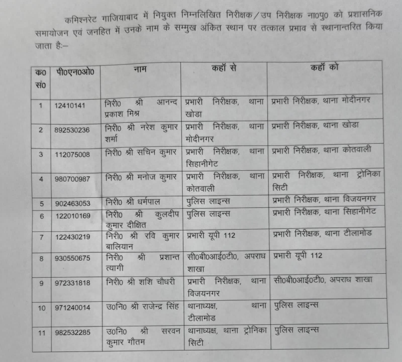 11थाना प्रभारियो के कार्यक्षेत्र बदले गए