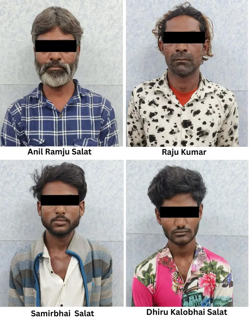 गिरफ्तार किए गए आरोपियों के नाम अनिल सलात, धीरू सलात, समीरभाई सलात और राजू कुमार बताए गए हैं। पुलिस के अनुसार, ये चारों लंबे समय से इस तरह की ठगी की वारदातों को अंजाम दे रहे थे।