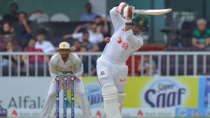 सईम अय्यूब ने 35 गेंदों पर 20 रन, कप्तान शान मसूद ने 34 गेंदों पर 28 रन, साउद शकील ने 10 गेंदों पर 2 रन बनाए। मोहम्मद अली का खाता तक नहीं खुला। अबरार अहमद ने 2 और मीर हमजा ने 4 रन बनाए। हसन महमूद ने सबसे ज्यादा 5 विकेट चटकाए। उनके अलावा नाहिद राणा ने 4 और तस्कीन अहमद ने 1 शिकार किया