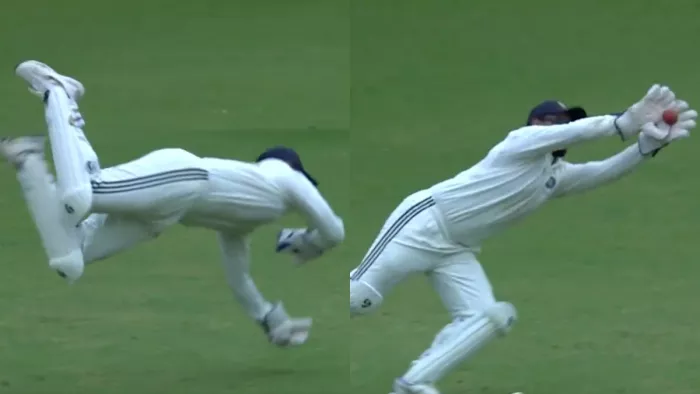 ऋषभ पंत टेस्ट में वापसी के लिए बेताव हैं। दलीप ट्रॉफी 2024 में इसकी बानगी देखने को मिल रही है। तूफानी बल्लेबाजी के बाद पंत विकेटकीपिंग में भी छा गए। उन्होंने चौथे दिन विकेट के पीछे एक शानदार कैच लपका। पंत ने हवा में छलांग लगाकर इस कैच को पूरा किया। इस कैच का वीडियो अब सोशल मीडिया पर तेजी से वायरल हो रहा है।