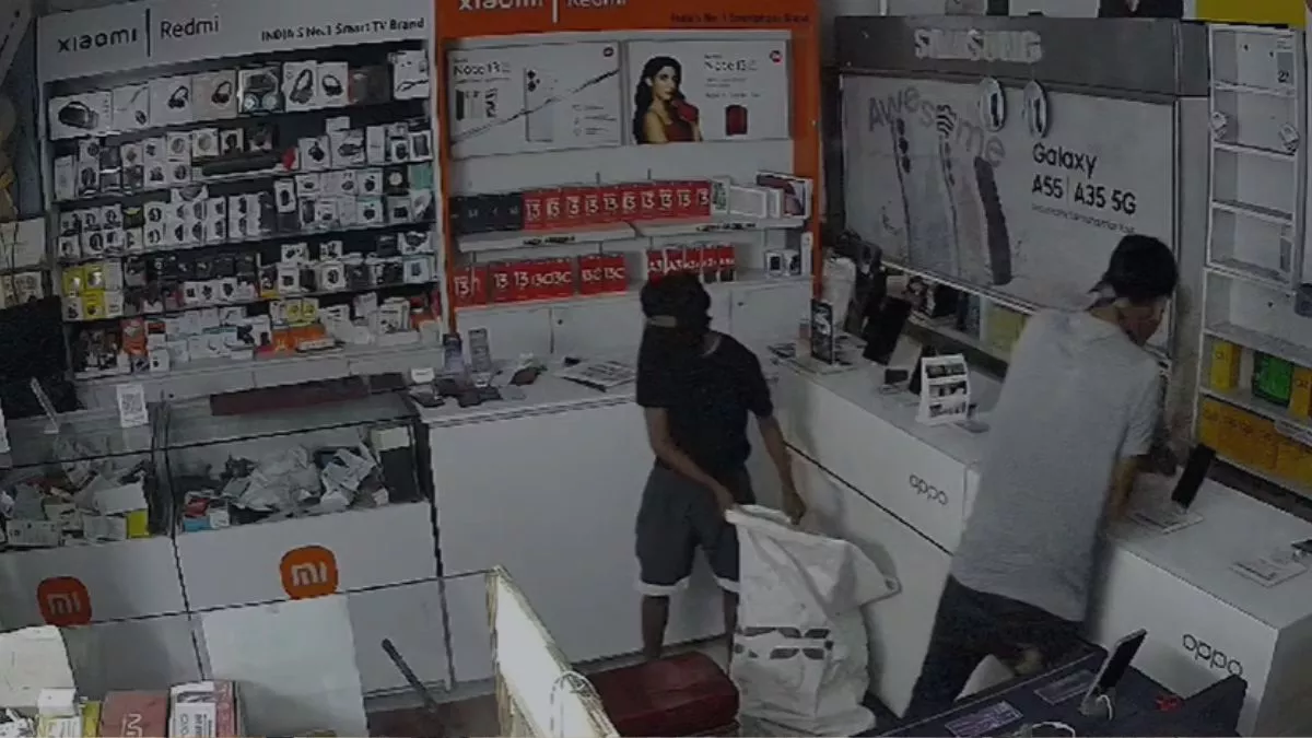 शोरूम के सीसीटीवी फुटेज में तीन नकाबपोश बदमाशों को स्टोर में घुसते और चार से पांच मिनट के भीतर चोरी को अंजाम देते हुए देखा जा सकता है। फुटेज में दिख रहा है कि चोरों ने कितनी आसानी से मोबाइल बैग में भरकर फरार हो गए।