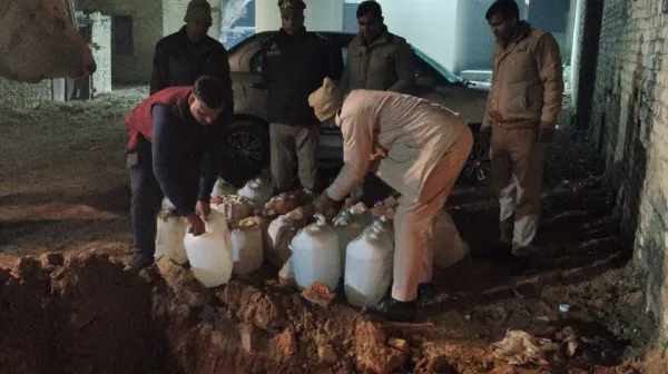 थाना फतेहगंज पूर्वी जनपद बरेली शासन द्वारा चलाये गये आपरेशन क्लीन के क्रम में 35 मुकदमो से सम्बन्धित 610 लीटर अवैध शराब के विनष्टीकरण के सम्बन्ध में