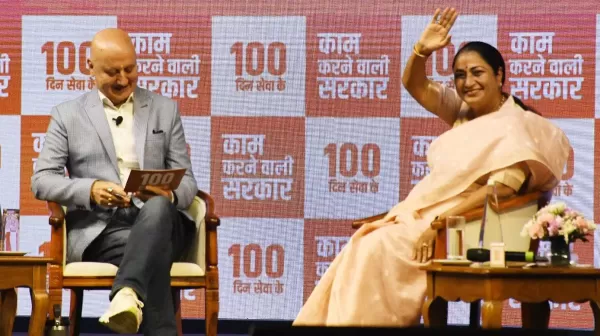 दिल्ली की मुख्यमंत्री रेखा गुप्ता ने जवाहर लाल नेहरू स्टेडियम में एक कार्यक्रम आयोजित कर अपनी सरकार के 100 दिनों का रिपोर्ट कार्ड जनता के सामने पेश किया। इस अवसर पर अभिनेता अनुपम खेर भी मौजूद थे। अनुपम खेर ने दिल्ली सीएम रेखा गुप्ता से चुटकी लेते हुए कहा कि इतनी देर से बोलने के बाद भी उन्हें खांसी नहीं आई।