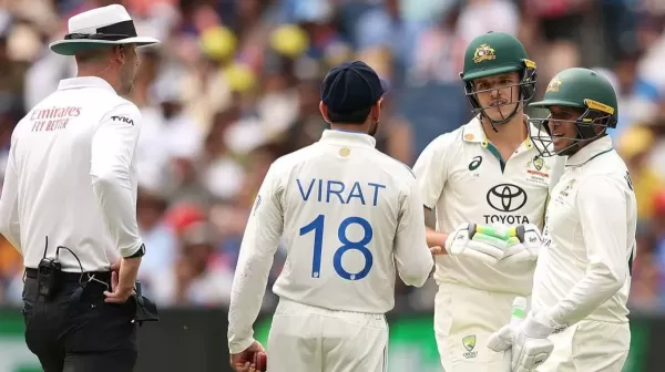 Virat Kohli Sam Konstas ICC मेलबर्न में भारत-ऑस्ट्रेलिया के बीच खेले जा रहे चौथे टेस्ट मैच में विराट कोहली और 19 साल के सैम कोंस्टास के बीच तीखी बहस हुई। इस घटना का वीडियो तेजी से सोशल मीडिया पर वायरल हो रहा है जिसमें अंपायर और प्लेयर्स ने इस मामले में बीच-बचाव किया और माहौल को शांत कराया। अब आईसीसी इस मामले में दखल देने वाला है।