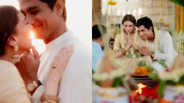 अभिनेत्री अदिति राव हैदरी और साउथ एक्टर सिद्धार्थ ने शादी कर ली है। ये एक सीक्रेट वेडिंग थी और अब अदिति ने शादी की तस्वीरें शेयर की हैं। दोनों ने इसी साल मार्च में सगाई की थी। शादी 400 साल पुराने मंदिर में हुई। अदिति राव हैदरी और सिद्धार्थ पिछले तीन साल से एक-दूसरे को डेट कर रहे हैं।