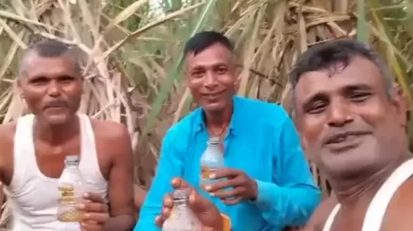 एक गन्ने के खेत में तीन लोग शराब और मुर्गा पार्टी कर रहे हैं। वीडियो वायरल होने के बाद पुलिस ने तीनों को गिरफ्तार कर लिया है। आरोपी शराबबंदी और चुनावों को लेकर वीडियो में चर्चा करते दिखाई दे रहे हैं।