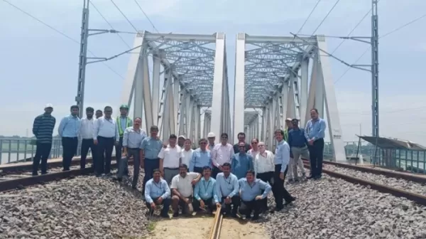 नैनी पर यमुना नदी पर बने नए रेल पुल पर मौजूद अधिकारी. सौ सीपीआरओ