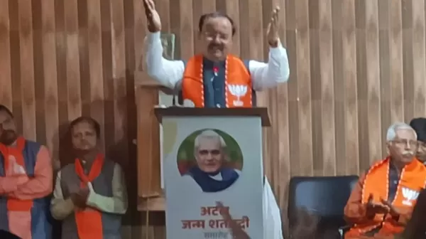 'अटल बिहारी वाजपेयी की जयंती के मौके पर बुधवार को उत्तर प्रदेश के उप मुख्यमंत्री केशव प्रसाद मौर्य वाराणसी पहुंचे। इस दौरान उन्होंने कार्यक्रम को संबोधित किया। उन्होंने कहा कि कांग्रेसी नेता नीले रंग के वस्त्र पहन कर बाबा साहेब का अनुयायी होने का स्वांग रच रहे हैं। जनता इनकी असलियत को पहचानती है। उन्होंने समाजवादी पार्टी पर भी निशाना साधा।