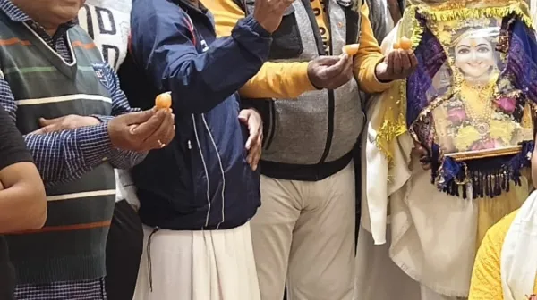 राधा रानी के भक्तों ने निकाली प्रभात फेरी, सांवरिया के भक्तों ने गुलाल लगाकर राधा रानी के भजनों पर किया नृत्य