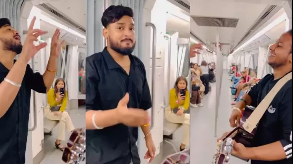 दिल्ली मेट्रो का एक और वीडियो सोशल मीडिया पर वायरल हो रहा है। 56 सेकंड की इस वीडियो में देखा जा सकता है कि दो लड़के एक साथ भजन गा रहे हैं। एक लड़का गिटार भी बजा रहा है। लड़के ने कहा प्रेम से बोलो जय माता दी... यात्रियों ने भी दोनों लड़कों का साथ दिया। यात्रियों ने जय माता दी का जयकारा लगाया।