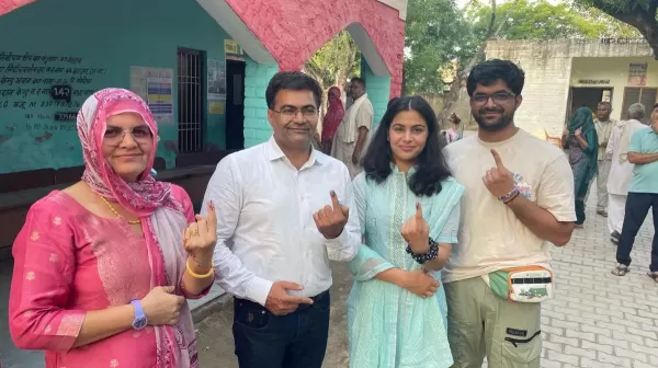 मनु भाकर ने किया 'डेब्यू', परिवार के साथ पोलिंग बूथ पर आईं नजर, युवाओं को दिया खास संदेश