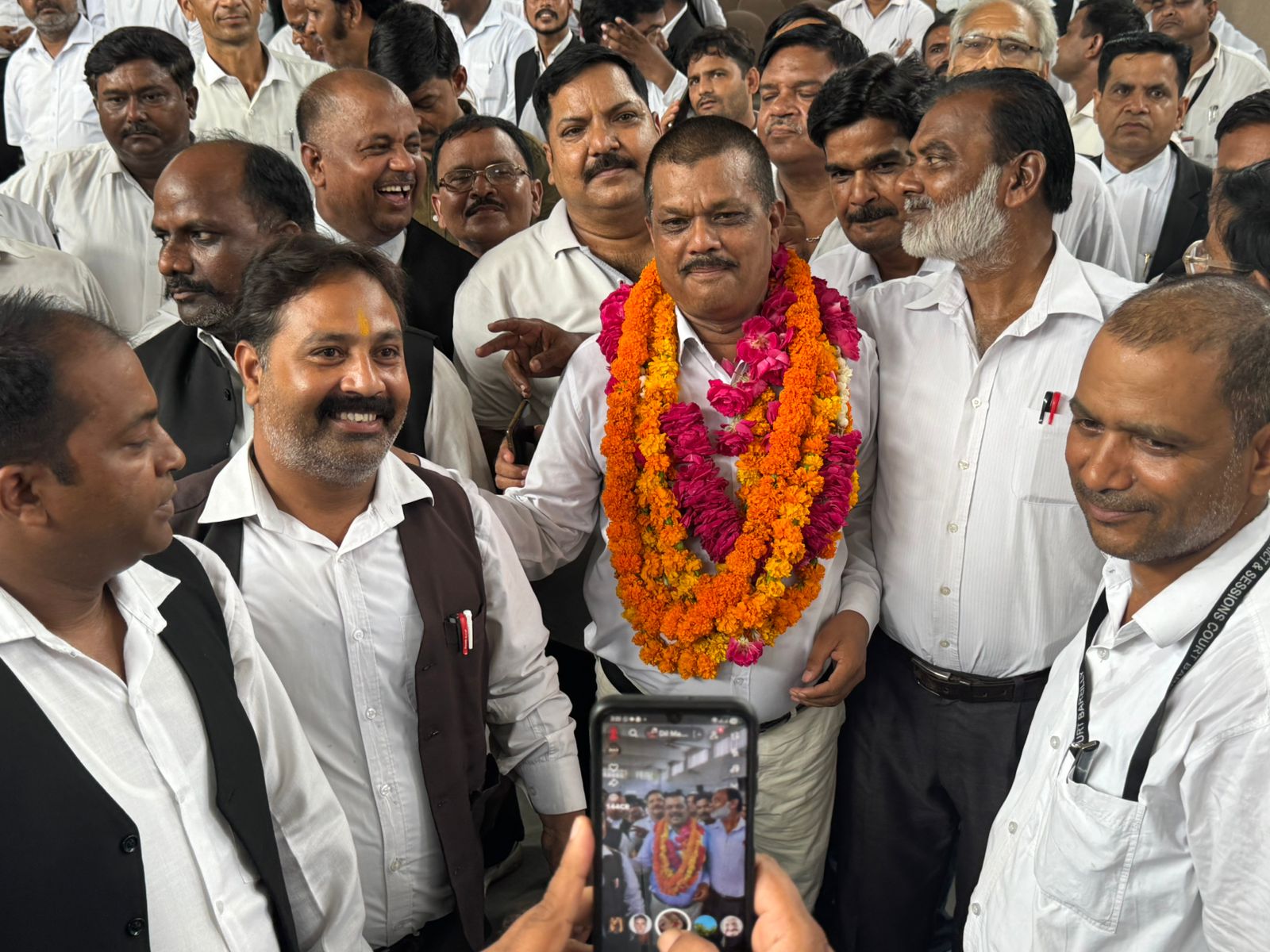 जनपद बरेली _ बरेली बार एसोसिएशन के पूर्व में हुए चुनाव में गत वर्ष लगभग 550 वोट लेकर मजबूत उपस्थिति दर्ज कराने वाले दूसरे स्थान पर रहे प्रत्याशी अंगन सिंह एडवोकेट ने आज अपने समर्थकों के साथ सचिव पद पर अंतिम दिन नामांकन करा कर ताल ठोंक दी है जिससे बरेली बार एसोसिएशन के सचिव पद पर चुनावी मुकाबला और कड़ा हो गया है हांलांकि बरेली बार एसोसिएशन के इस चुनाव में देखना यह दिलचस्प होगा कि इस बार के चुनाव में मतदाता बहुत ही असमंजस की स्थिति में फंसे हुए हैं क्योंकि उनके मध्य प्रतिद्वंद्वी प्रत्याशियों को अपनी लोकप्रियता के आधार पर कोई किसी से कम नहीं आंक पा रहे है और साथ ही दो वरिष्ठ अधिवक्ताओं द्वारा दो अलग-अलग सचिव पद के प्रत्याशियों को अपना समर्थन देना भी चर्चा का विषय बना हुआ है। सचिव पद पर नामांकन कराने वाले प्रत्याशी अंगन सिंह एडवोकेट ने भी अपने समर्थकों के साथ बरेली बार चुनाव पैनल के समक्ष अपना नामांकन दाखिल किया और उसके बाद अधिवक्ताओं के साथ जलपान किया जिसमें हजारों अधिवक्ता उपस्तिथि रहे और चुनाव में पूर्ण सहयोग का वायदा किया ।