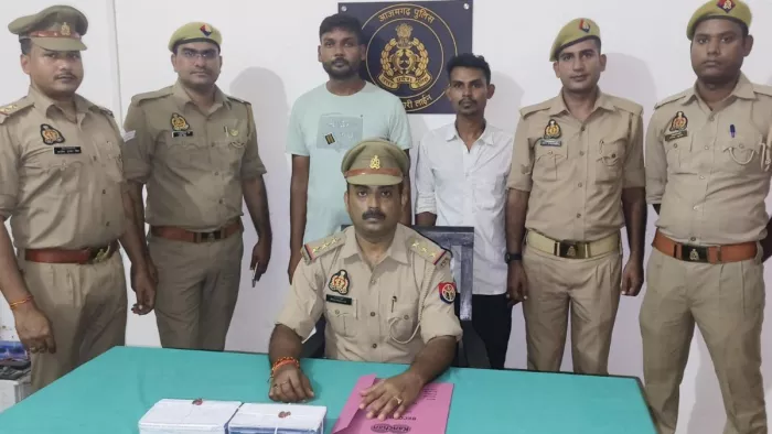 पुलिस ने साइबर ठगी के मामले में दो आरोपियों को आजमगढ़ से गिरफ्तार किया है जो झारखंड के जामताड़ा के गैंग से जुड़े हुए हैं। आरोपियों ने फर्जी नाम और पते पर 29 बैंक खाते खुलवाकर 2.74 करोड़ रुपये की हेराफेरी की। पुलिस ने उनके पास से कई आधार कार्ड बैंक खातों के दस्तावेज एटीएम कार्ड और अन्य सामग्री बरामद की है।