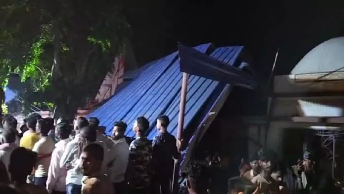 बिहार के सारण जिले में बीती रात बड़ा हादसा हो गया। यहां एक महावीरी मेले में एक घर का छज्जा गिरने से कई लोग घायल हो गए। घटना का वीडियो इंटरनेट मीडिया पर तेजी से वायरल हो रहा है। जानकारी के अनुसार हादसे में घायल हुए सभी लोगों को इलाज के लिए इसुआपुर स्वास्थ्य केंद्र ले जाया गया।