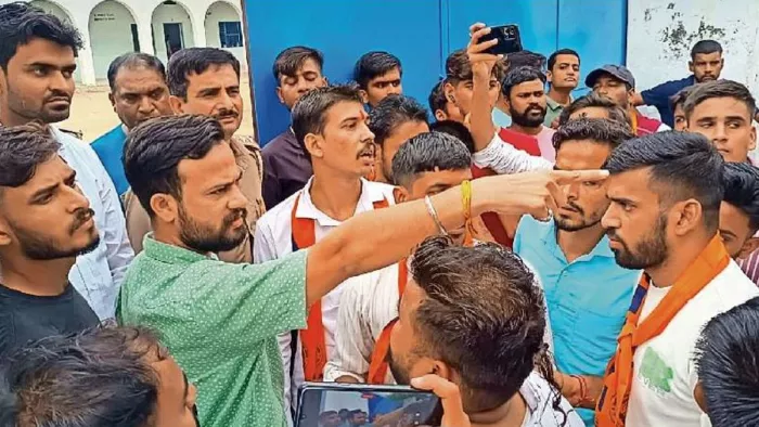 बुधवार को बजरंग दल के विद्यार्थी प्रमुख पीयूष सिंह व एबीवीपी के नगराध्यक्ष हिमांशु चौहान के नेतृत्व में कार्यकर्ता एकत्र होकर कालेज पर पहुंच गए। उनके साथ एक छात्र भी मौजूद था जो, कलावा व तिलक लगाकर आने को मना करना, बिना हाथ जोड़े ही प्रार्थना करवाना और शुक्रवार को 12 बजे अवकाश करने की बात को पुष्ट कर रहा था।