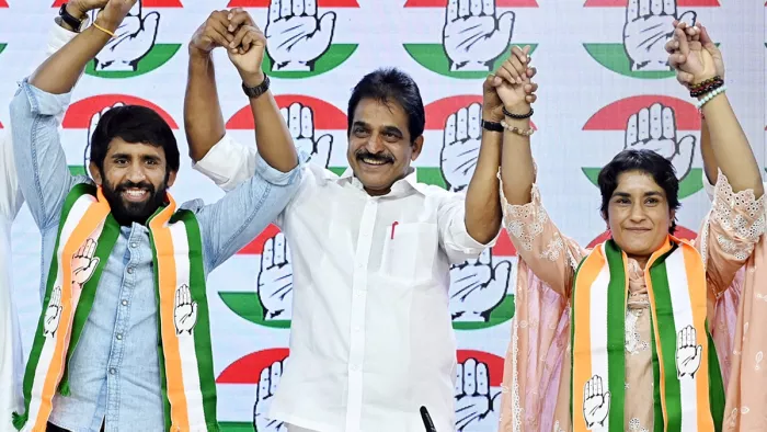कुश्ती के अखाड़े में दम दिखाने के बाद पहलवान विनेश फोगाट और बजरंग पूनिया ने अब राजनीति के दंगल में कदम रख दिया। दोनों शुक्रवार को कांग्रेस में शामिल हो गए। माना जा रहा है कि दोनों विधानसभा के दंगल में उतरेंगे, हालांकि इसपर अंतिम निर्णय नहीं हुआ है।