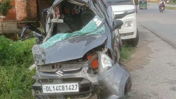 दिल्ली शाहदरा का रहने वाला केशव मग्गो अपने दोस्त उत्सव शर्मा, आयुष शर्मा, सौरभ और तुषार के साथ कार में सवार होकर दिल्ली से उत्तराखंड मंसूरी घूमने के लिए जा रहा था। करीब दौ बजे कार सवार जैसे ही नए बाईपास खुडलिया के सामने पहुंचे तो चालक कार से नियंत्रित खो बैठा और कार डिवाइडर पार कर गढ़ की ओर से आ रहे तेज रफ्तार ट्रक से टकराकर पलट गई