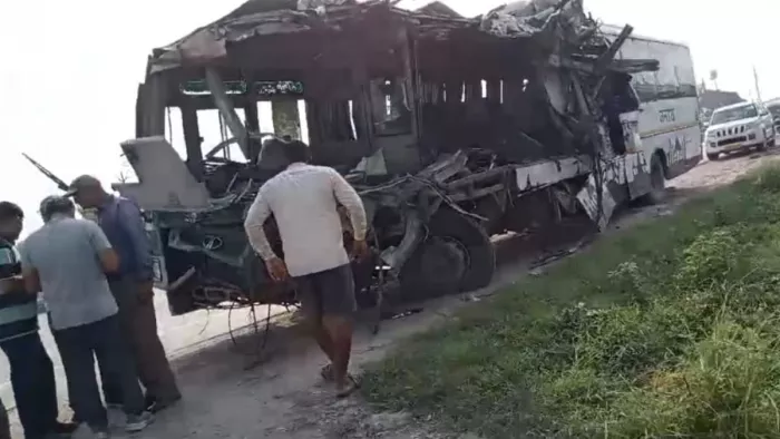 कौशांबी जिले के अझुहा निवासी बस चालक देशराज व गोरखपुर में रहने वाले परिचालक सर्वेश यादव वाराणसी से यात्रियों को लेकर कानपुर जा रही थी। रविवार तड़के पहर तेज रफ्तार अनियंत्रित रोडवेज बस औंग थाने के गोधरौली के समीप मौरंग लदे खड़े दो डंपरों में एक के पीछे जा घुसी