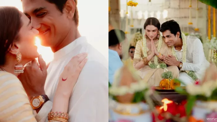 अभिनेत्री अदिति राव हैदरी और साउथ एक्टर सिद्धार्थ ने शादी कर ली है। ये एक सीक्रेट वेडिंग थी और अब अदिति ने शादी की तस्वीरें शेयर की हैं। दोनों ने इसी साल मार्च में सगाई की थी। शादी 400 साल पुराने मंदिर में हुई। अदिति राव हैदरी और सिद्धार्थ पिछले तीन साल से एक-दूसरे को डेट कर रहे हैं।