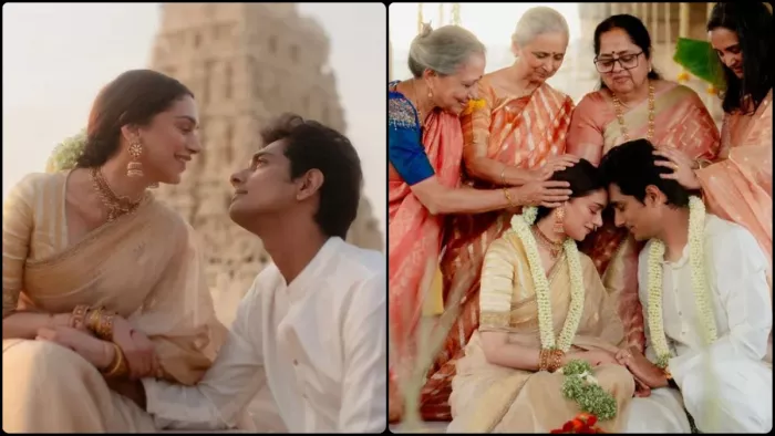 Aditi Rao Hydari ने मार्च महीने में Siddharth के साथ अचानक सगाई से सभी को दंग कर दिया था। अब 6 महीने बाद उन्होंने सिद्धार्थ से शादी कर ली है। अभिनेत्री ने सोशल मीडिया पर अपनी शादी की तस्वीरें शेयर की हैं। उन्होंने 400 साल पुराने मंदिर में शादी रचाई है जहां से उनका सालों पुराना नाता रहा है। देखिए उनकी वेडिंग पिक्चर्स।