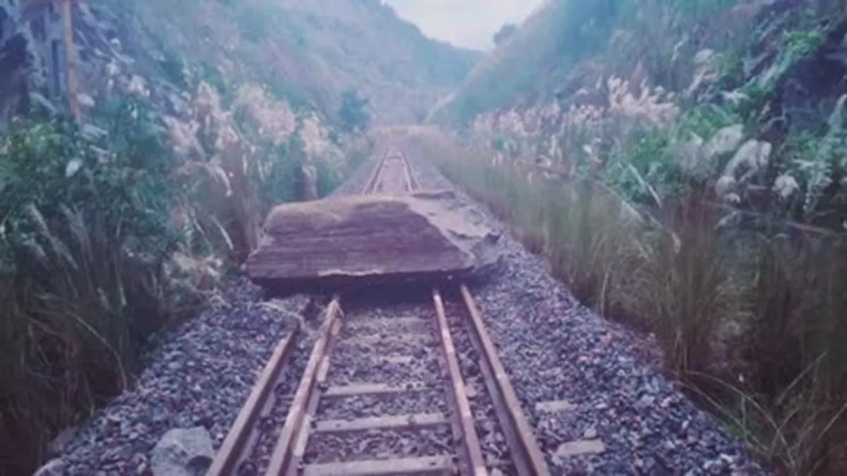 राजधानी रांची से रामगढ़ के सिधवार-सांकी रेलखंड की पटरी पर गिरी चट्टान