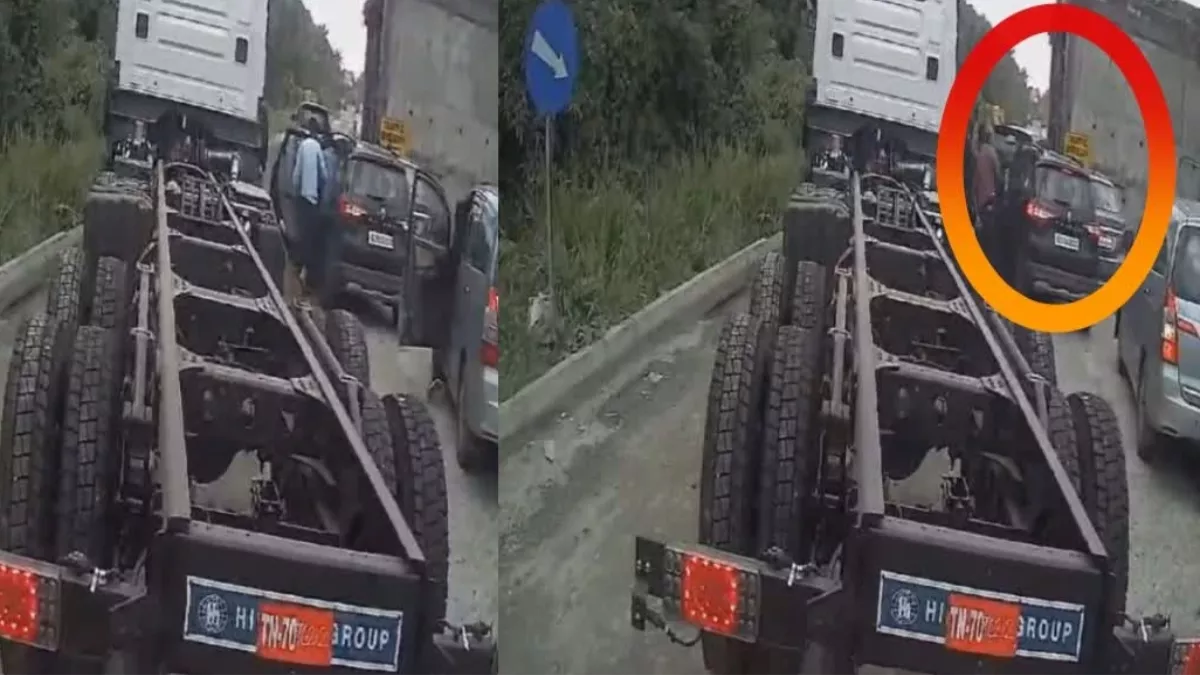 सोशल मीडिया पर वायरल वीडियो डैशकैम से रिकॉर्ड किया गया है। पुलिस ने इस मामले के बारे में बताया कि यह घटना 22 सितंबर की है। नेशनल हाईवे पर फ्लाईओवर के पास निर्माण कार्य चल रहा था, जिसके कारण वहां आने-जाने का मार्ग संकरा था। वाहनों को स्पीड कम करके गुजरना पड़ रहा था।