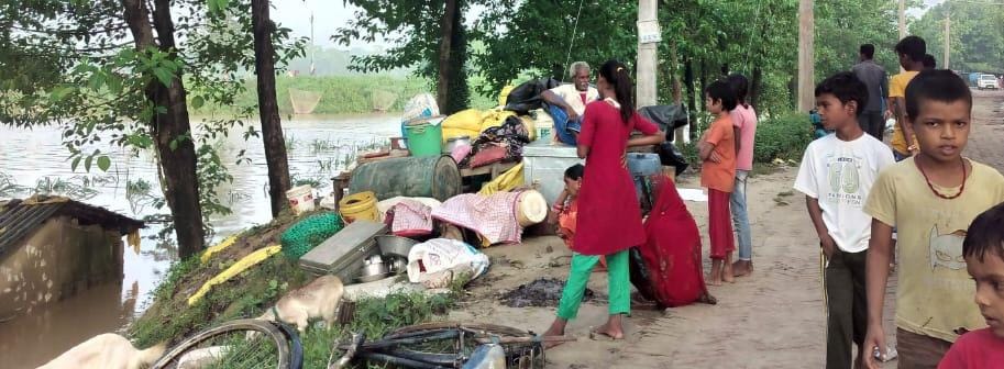 बागमती तटबंध पर कटैया गांव के पास शरण लिए लोग।