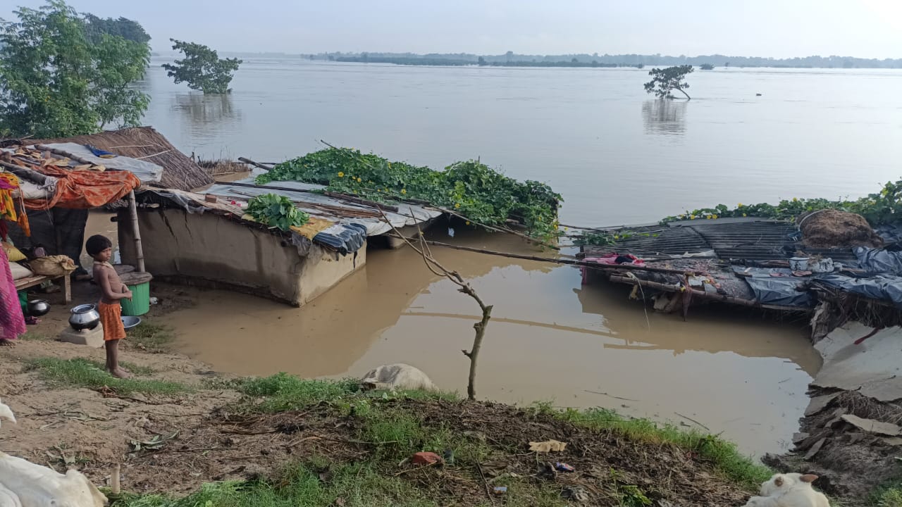 पुरनहिया प्रखंड के दोस्तिया दक्षिणी में घुसा बागमती नदी का पानी।
