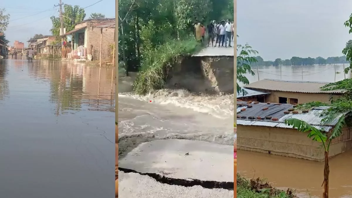बिहार में इन दिनों बाढ़ से तबाही का खतरनाक मंजर देखने को मिल रहा है। नदियों में उफान से 6 तटबंध और एक सुरक्षा बांध ध्वस्त हो गए हैं। बगहा शहर में बाढ़ का पानी घुस गया है जिसके चलते लोगों को परेशानियों का सामना करना पड़ रहा है। वहीं जोगबनी में ट्रैक पर पानी चढ़ गया है जिसकी वजह से छह घंटे तक ट्रेनों का परिचालन बाधित रहा।