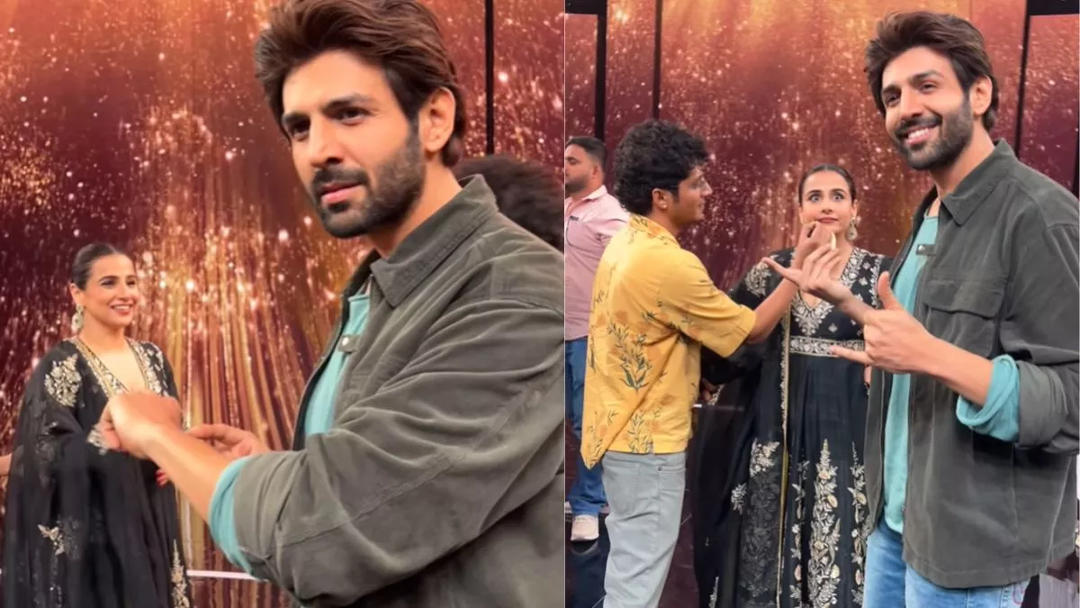 शेयर किए गए वीडियो में विद्या बालन ब्लैक कलर के कढ़ाई वाले अनारकली शूट में नजर आ रही हैं। इसे उन्होंने बड़े-बड़े इयररिंग्स के साथ पेयर किया है और बालों में जूड़ा बनाया हुआ है। वहीं दूसरी ओर, कार्तिक आर्यन ने जींस और ब्लैक डेनिम जैकेट के साथ एक स्टाइलिश नीली टी-शर्ट पहनी हुई है।