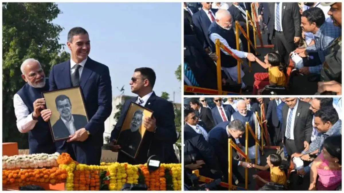जब दोनों राजनेताओं का काफिला सड़क पर चल रहा थे तभी दिव्यांग लड़की ने दो तस्वीरें अधिकारियों को सौंप दी। अधिकारियों ने तस्वीरें (पोट्रेट) पीएम मोदी और पेड्रो सांचेज को सौंप दी। तस्वीरें देखने के बाद दोनों राजनेता गाड़ी से उतरे और लड़की के पास पहुंचे। फिर लड़की से पीएम मोदी ने मुलाकात की