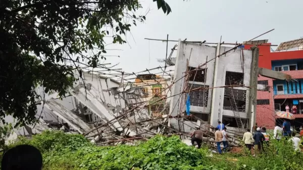 भारी बारिश के बीच बेंगलुरु में एक निर्माणाधीन इमारत ढह गई है। मलबे के नीचे कई मजदूरों के फंसे होने की आशंका है। यह घटना बेंगलुरु पूर्व के होरमावु अगरा इलाके में हुई और मजदूरों की तलाश के लिए आपातकालीन सेवाएं मौके पर पहुंच गई हैं।