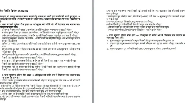 कानून व्यवस्था बनाए रखने को लेकर जनपद के थानों द्वारा शांति भंग में 23 को किया गिरफ्तार