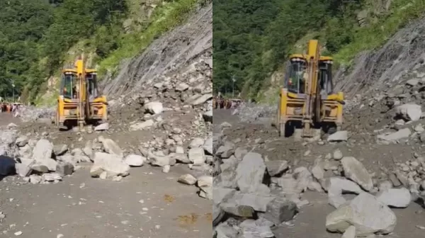 बारिश के चलते आए बोल्डर... गौरीकुंड हाईवे मुनकटिया में ब्लॉक, 6 KM पैदल चलकर पहुंच रहे श्रद्धालु