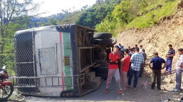 हिमाचल प्रदेश के अर्की में शुक्रवार सुबह एक बस दुर्घटनाग्रस्त हो गई। शीलघाट से शिमला जा रही हिमाचल पथ परिवहन निगम की बस सरयांज-पीपलूघाट सड़क मार्ग पर पलट गई। बस का प्रेशर पाइप फटने से हुए इस हादसे में करीब 13 यात्री घायल हो गए जिन्हें अस्पताल भेजा गया है। चालक की सतर्कता से एक बड़ा हादसा टल गया। पुलिस और प्रशासन मौके पर पहुँचकर कार्रवाई कर रही है।